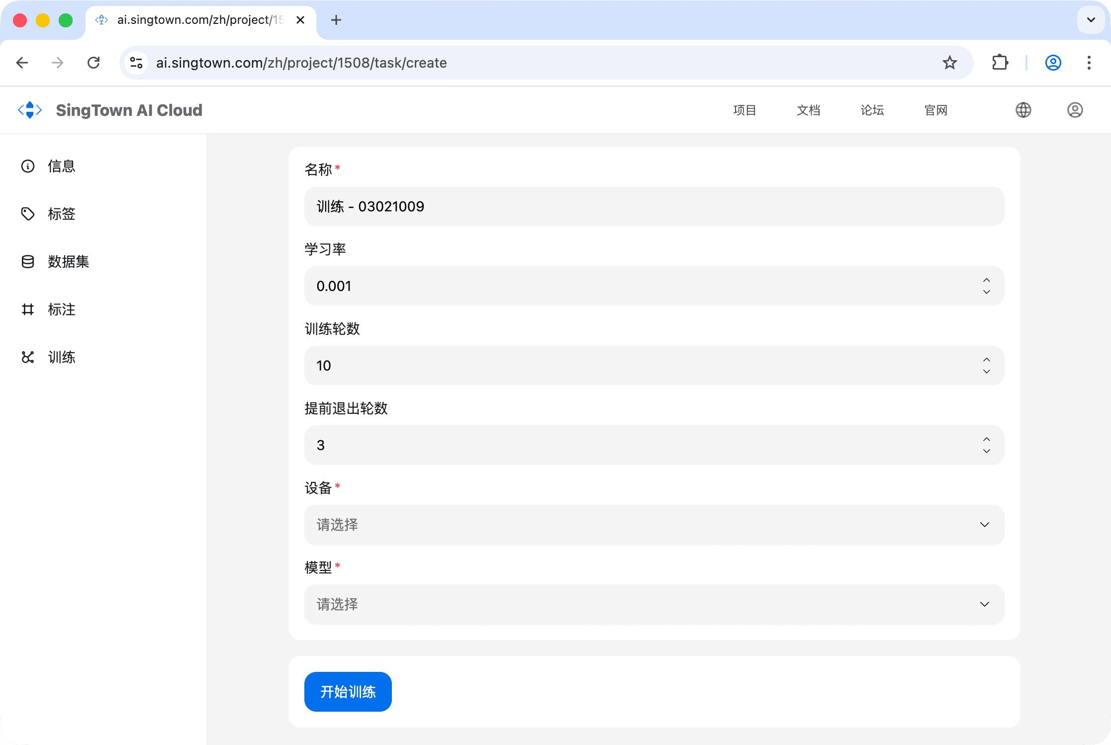- 点击「开始训练」即可