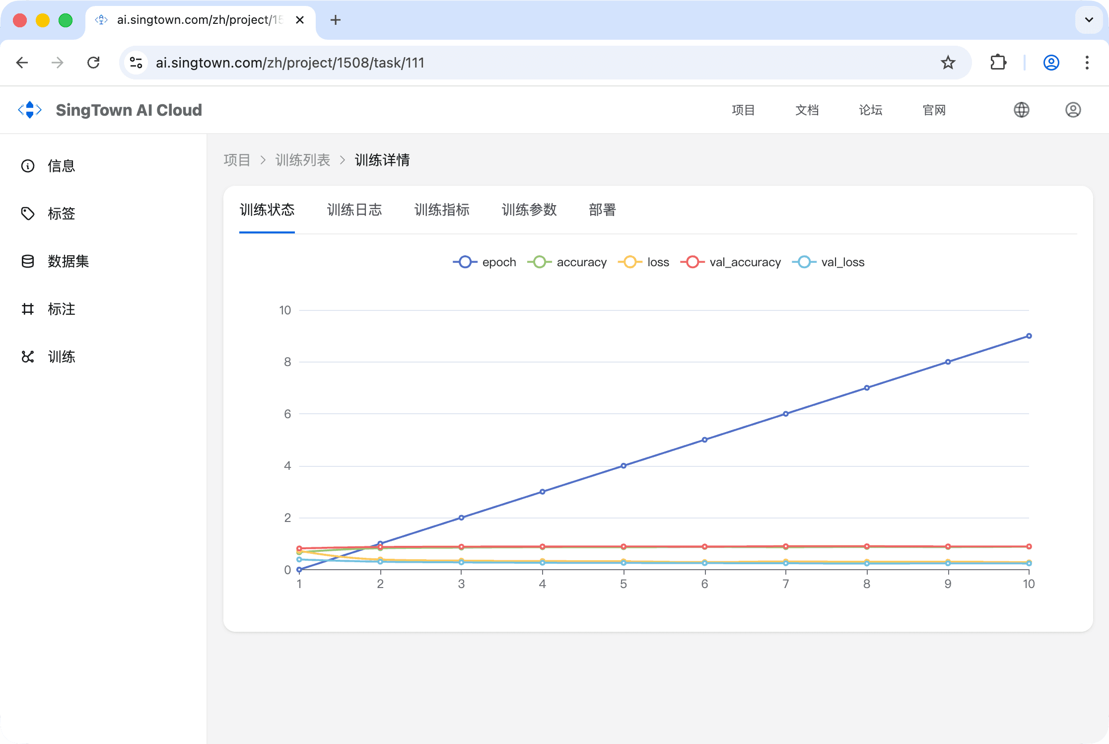 点击训练即可进入训练详情页面,查看训练的结果。